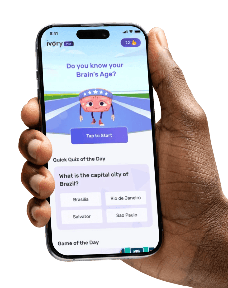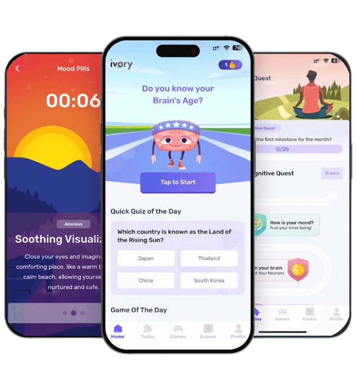 Incorporate Ivory into your daily routine, especially if you are above 35. Stay mentally active daily, repeat assessments every 6-12 months, and test your brain health daily on Ivory.